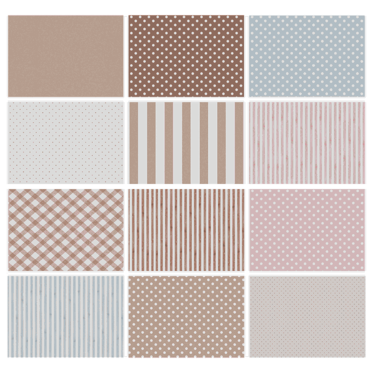 Os papéis decorativos são impressos em papel offset adesivo 90g/m², são 12 estampas pra você deixar sua imaginação fluir sem limites!