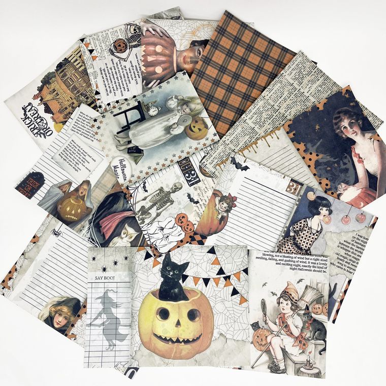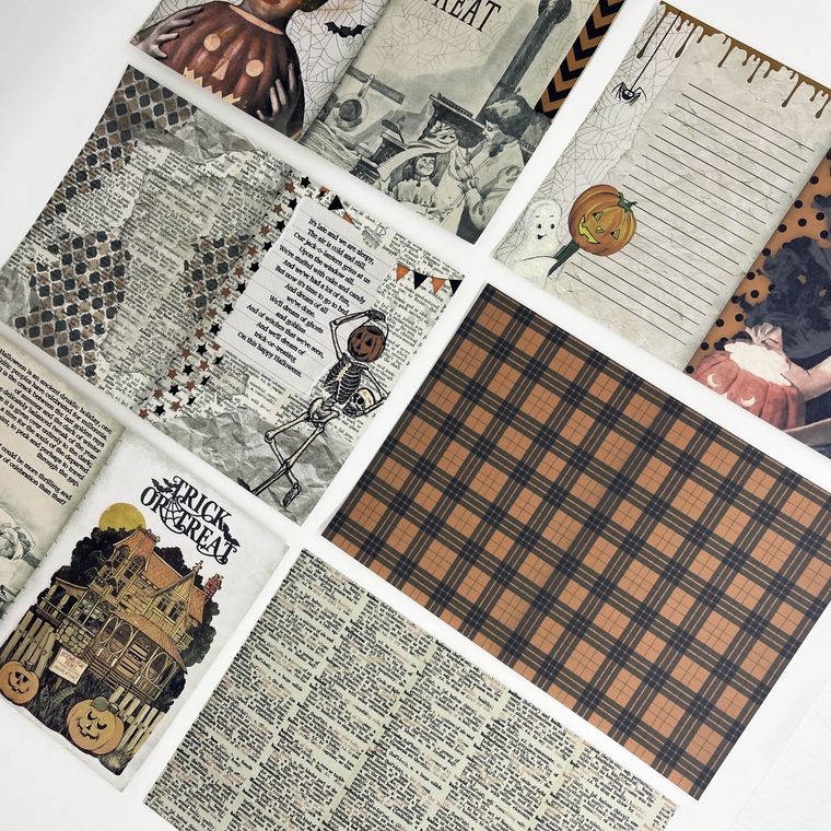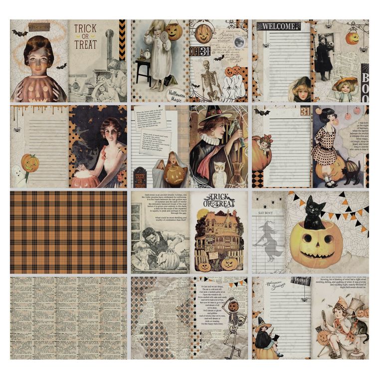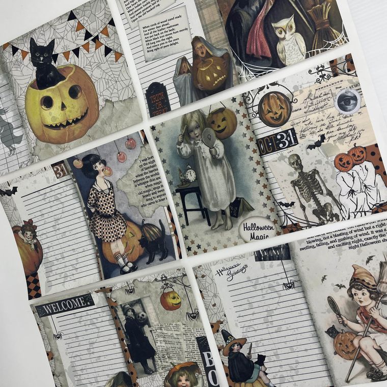 12 PAPÉIS ADESIVOS 15X21 CM - HALLOWEEN EPHEMERA