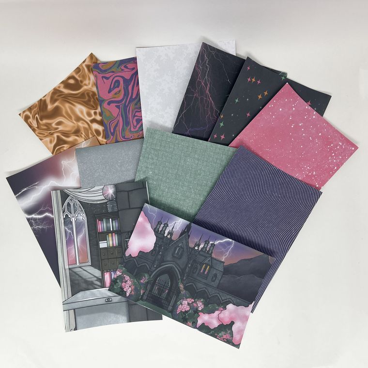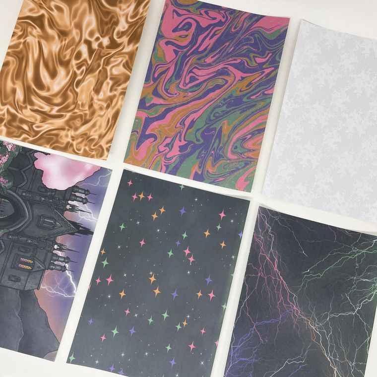 Os papéis decorativos são impressos em papel offset adesivo 90g/m², são 12 estampas pra você deixar sua imaginação fluir sem limites!