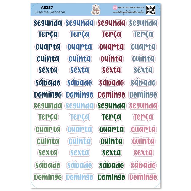 Dias da Semana Cores - Adesivos - A5 - 1