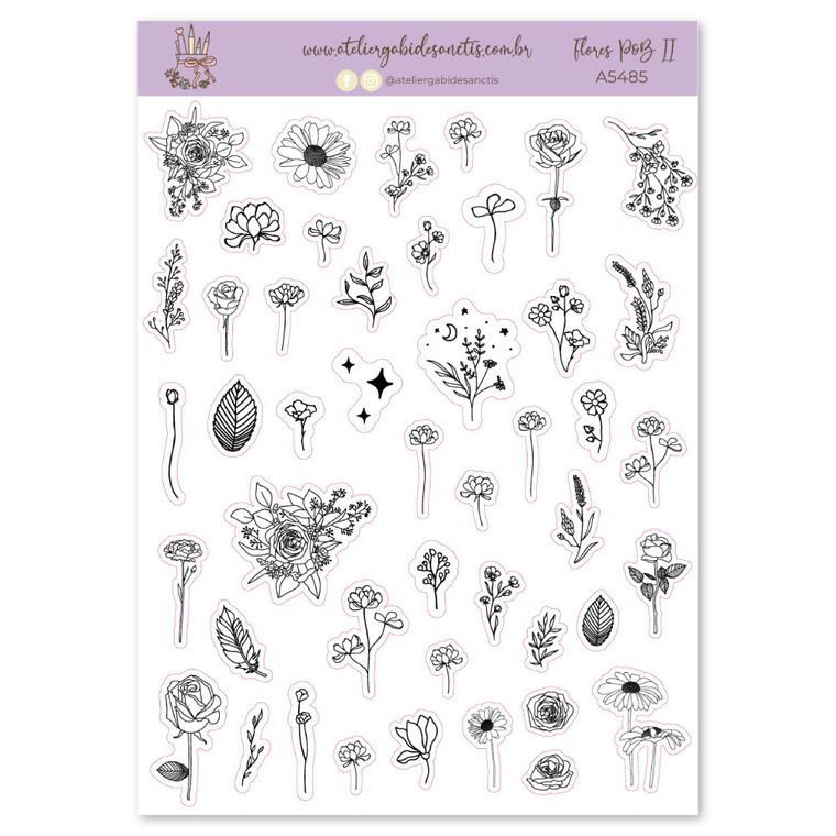 Flores P&B II - Adesivos - A5 - Transparente