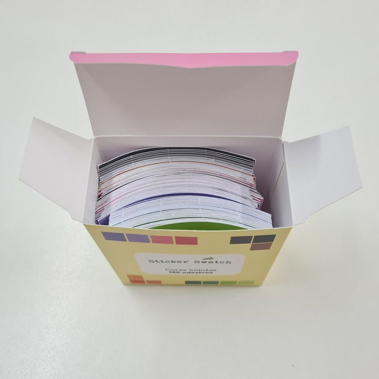 No modelo Cores Sólidas você encontra 120 adesivos coloridos no tamanho 9x9 cm, sendo 2 unidades de cada cor. São no total 20 cores em 3 tons diferentes: mais escuro, médio e mais claro. E eles vem embaladinhos nessa caixa linda, assim você mantém tudo organizado e juntinho!